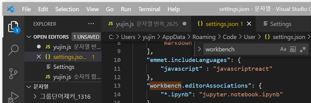 자동으로 추가 생성되는 workbench.colorCustomizations안에 위와같은 코드를 넣고 컬러만변경!
