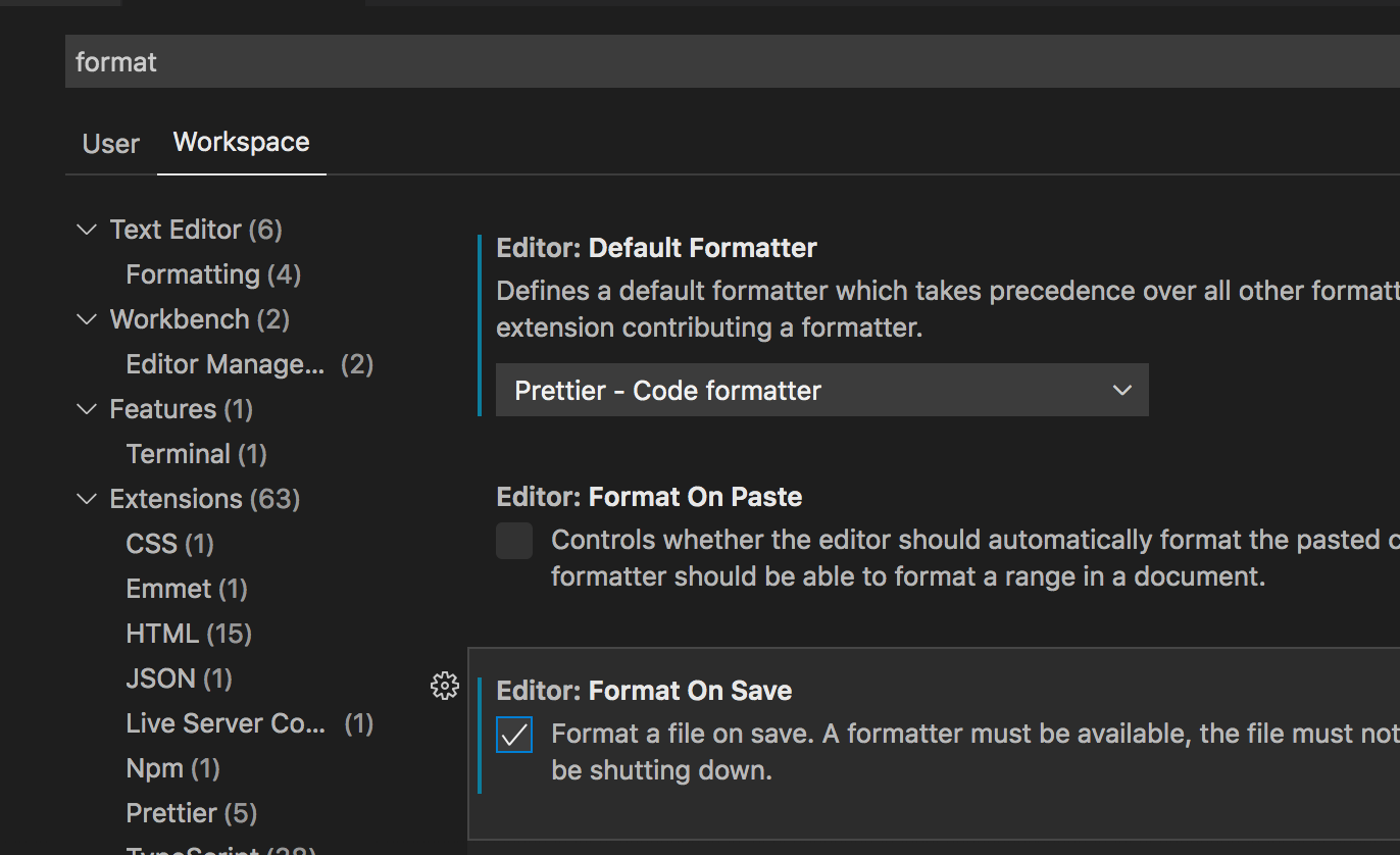 "editor.formatOnSave" : true,