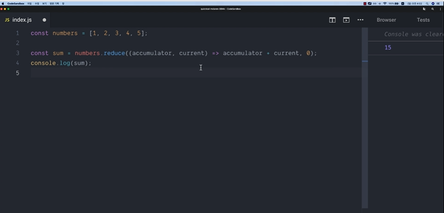 패스트캠프 프론트앤드 인강 34일차 자바스크립트의 연산자와 내장배열함수 foreach, reduce를 복습해보았다.